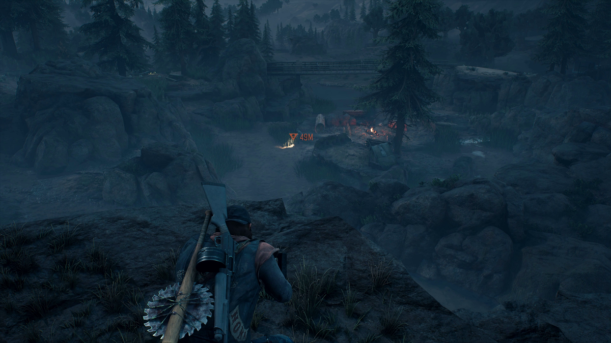 The objective is to go after an individual named Wheeler who has been stealing from the camp. He and his band of misfits is hold up at a camp close to the Abandoned Nero Refugee Camp. As you get close to the Nero Camp Deacon will say ” This is it….. Gotta go in on foot”. You’ll be around 166 meters from the destination marker so if you want to remain undetected pull over and park you bike. Go to the entrance to the Nero Camp, head for the red SUV just inside and to the right. There might be a marauder or two to the right so use the truck as cover and take them out. Continue past the truck and head toward the cliffs ahead of you. There will be a small pond on the right and two marauders on watch. There are a couple of bushes there you can use for cover so taking these two out shouldn’t be difficult. Keep going all the way to the top, there will be a rock ledge that overlooks the camp, from here you should be able to take out the rest.