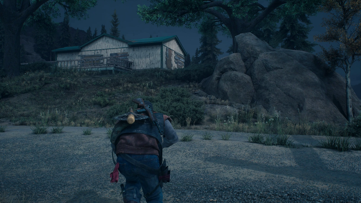This mission is unlocked when you talk to Rikki at Iron Mikes. If you look on the map the route that’s provided has you exiting Iron Mike’s by the boardwalk on the south west corner of the camp. When you get to the end of the boardwalk turn right, when you reach another path turn right again and ride in the general direction of the on screen compass. On the way will be a campsite with some loot. Keep right as you follow the dirt path until you reach the paved road, Salvation Springs, and then turn right. There will be a green house on your left that has some loot just before the left turn onto Wahtum Rd. Follow Wahtum Rd. until you see Camp Pioneer on your right and park in the bushes just before the camp. You’ll have to go through the camp searching for clues that will reveal the foot prints of Red Riley and get you close to his final location.