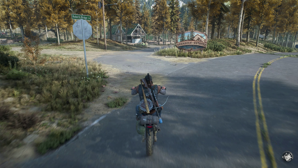 The mission is unlocked after the mission Something To Heal His Soul where you talk to Addy about getting some anti depressants for Boozer. Deerborn Estates is located off of Roberts Bridge Rd. east of Iron Mike’s camp and west of the Deerborn Ambush camp. There are 2 entrances along Roberts Bridge Rd. one on the north side and one on the south, which ever entrance you use you’ll want to park your bike in the bushes next to the Estate office building and take care of any Freakers that are roaming around. There’s a house across the street with a covered trailer in the front yard, as you get close a magnifying glass will appear revealing an area to be searched, this time there will be hand prints to follow. Jump onto the trailer and into the upstairs window. Searching the couch on the right produces all kinds of human and canine foot prints that lead to a room downstairs, inside there’s a corpse to examine and some dog treats on the dresser. After you pick up the dog treats there will be canine paw prints leading outside. The paw prints end on the stairs but you’ll hear a Freaker in the back yard, he’s trying to break into one of the sheds. After he’s taken care of there will be a place on the ground to interact with, as you do you put a couple of dog treats on the ground and you can see the puppy in the shed. A cut scene plays as the puppy comes out and eventually goes to Deacon, it continues back at Iron Mike’s camp with Deacon delivering the puppy in a crate, it ends with Boozer and puppy going into your camp, he kicks the door closed and the mission is complete. This one pays 4000XP, 250 credits, 1250 point gain in camp trust, and the Surviving Isn’t Living story line will be updated.