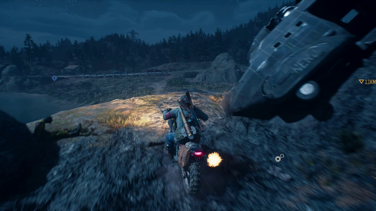This Nero Research Site is located southeast of Chemult Community College and northeast of the Bare Bay Ambush Camp. The ramp is across from Volcanic Scenic Bwy so you’ll have a long run at it, aim for around the middle of the ramp and if you time your boost right you’ll make it without falling off your bike. There is a little bit of leeway so if you miss the spot on the ramp you might come up a little short but if your bike isn’t in deep water you’ll be able to get back on. The second jump is shorter and doesn’t require nitro boost. There’s a micro recorder, Nero Injector, IPCA Tech, an anarchist cairn, and some scrap. The jump back is easier just follow the trial to the top, hit the boost and jump back.