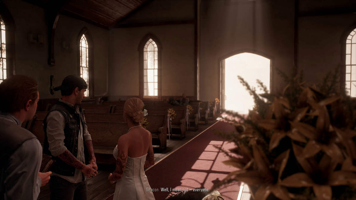 When you reach the destination a short cut scene will play showing the church doors open and lights on inside. There are 6 Rippers vandalizing the church, they can all be taken out from the outside from the steps. When you get to the last one a cut scene will play as Deacon remembers the wedding ceremony. The cut scene is interrupted when 5 squatters arrive. The first one to enter is a heavy gunner that can be taken out with 3 crossbow bolts but when I couldn’t take him out quickly I retreated to the outside and took them out from there. When the last one is down the cut scene continues and ends with Deacon torching the church. Completing this mission yields 3000XP and the story line will be updated.