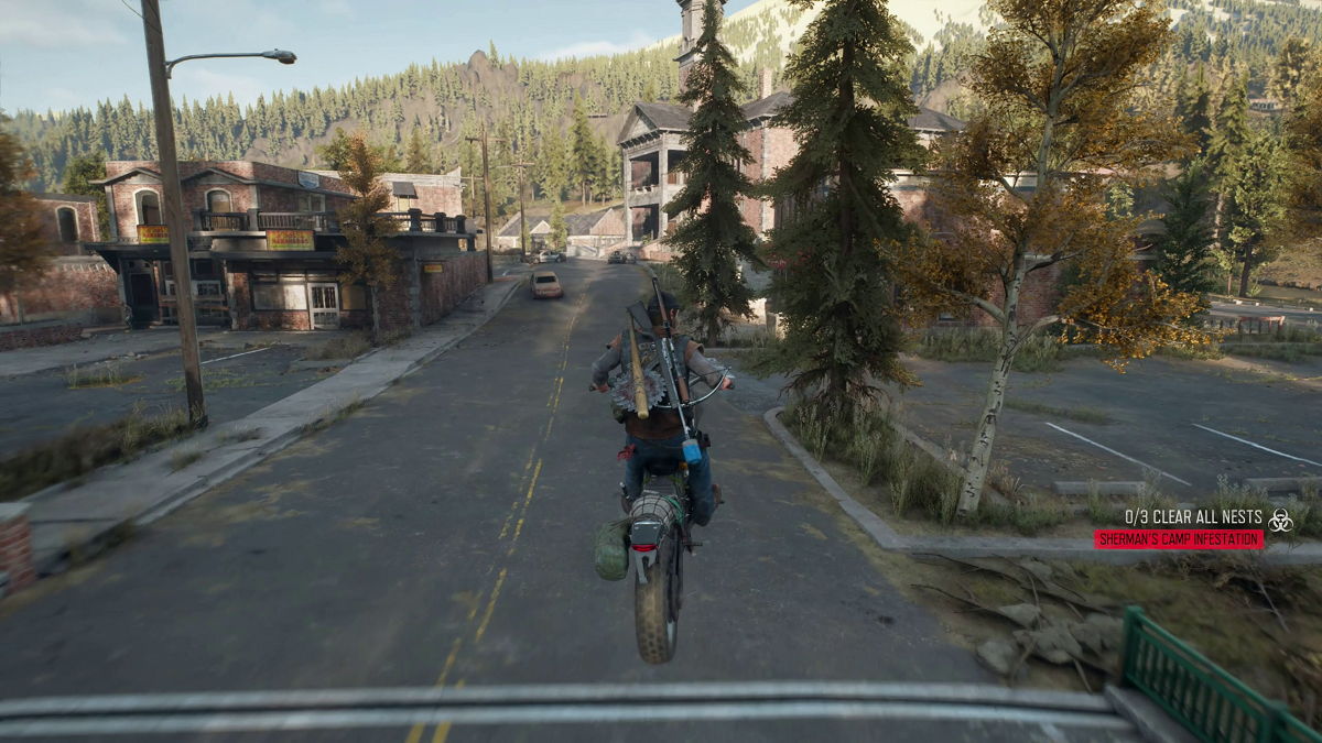 I entered Sherman’s Camp by Metolius River Rd. and jumped the bridge. At the time I had the stage 2 engine so to ensure a successful jump I used the nitro boost just before the expansion joint, I probably could’ve waited a nano second longer to get a cleaner landing. I parked my bike at the edge of the parking lot on the right which is away from the Freakers and it’s good spot to save your game once the mission is complete.