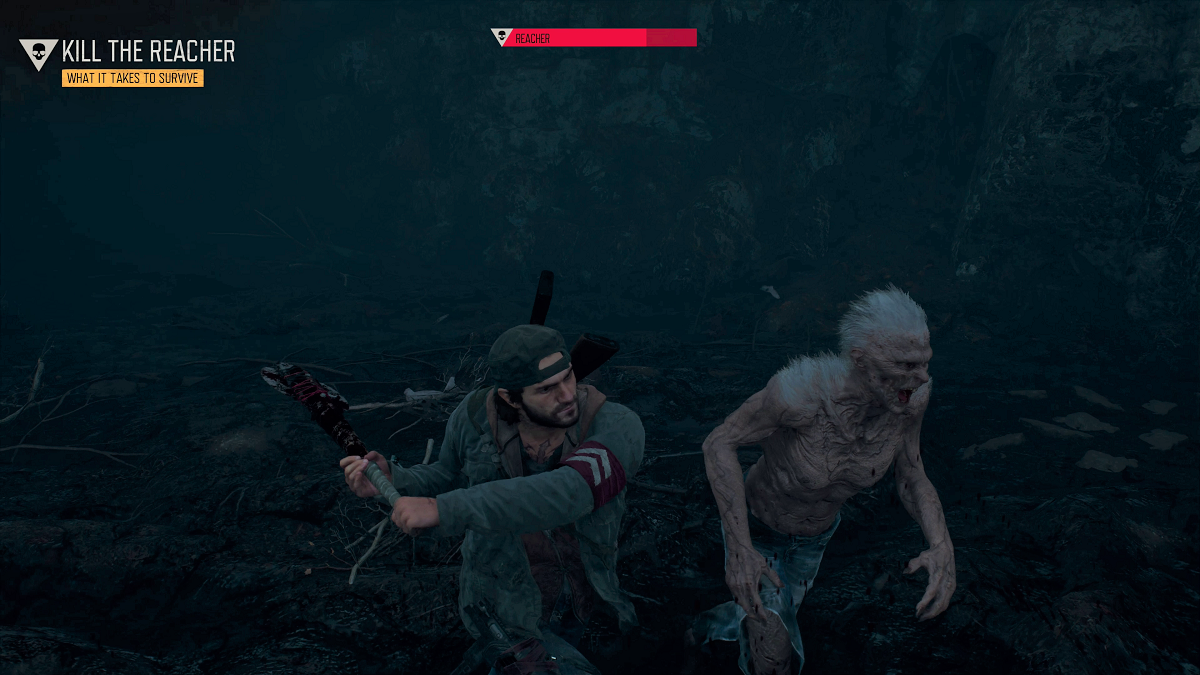 As you are enter the cave the conversation with O’Brian continues, along with a lot of Nero technical jargon you’ll learn there are four men missing in the cave somewhere. The first part is pretty straight forward just follow the flares on the wooden walkway, eventually you’ll reach what looks like a portable light to search. The search yields foot prints, follow them further into the cave, when you get to a bridge on the right cross it and search the ground by the flare which will produce more foot prints. At the end of these foot prints there will be two areas to search. Search the ground first and you’ll see what happened to the Nero scientist, then search the scientist you’ll for some scrap and a Growler. Deacon will call O’Brian and tell him what he found. Moving on from here I stopped to listen to O’Brian and noticed an area ahead and below to search, I’m not sure if I was meant to go there the way I did but there weren’t any more flares or foot prints up above. Searching the Nero bag produces more foot prints to follow, they’ll lead you past two flare ending at a flare and another body with two areas to search, search the ground first like the last time and the body last, again Deacon will report his findings to O’Brian. There are no foot prints to follow this time but if you jump down and move ahead you’ll see the glow of another flare. When I jumped down I took a little bit of damage but it turned out to be less confusing than going around on the wooden walkways. There’s an area to search on the ground by the flare, this will produce more foot prints, this time they’ll lead you to a narrow space to squeeze through just down from the flare. On the other side there’s another flare and two areas to search, same deal here search the ground first and then the body. No foot prints this time just climb the hill and you’ll see the glow from the flare below. Go to the right and jump down the two ledges, as you are down you’ll see an attractor bomb on the ground, this will be useful later. To the left of that is a Nero generator with some loot on top and passed it on the right will be the last Nero scientist. When you get close a cut scene will play showing the conversation between Cooper , the last scientist, and Deacon. When Deacon asks what did this to him he says it was a Reacher, a new type of Freaker that’s now in the game. The conversation ends but the cut scene continues where you can see flashes of the Reacher, when the cut scene ends you’ll have to defeat the Reacher. Hopefully you have a good melee weapon, I’ve found that it’s the fastest way to take the Reacher down it took me 12 strikes without taking any damage. With the Reacher down a cut scene will play as Deacon takes a biopsy and blood sample, when he calls O’Brian to tell him he has the samples he’s told to get out of there, there’s a horde coming and the cut scene ends.