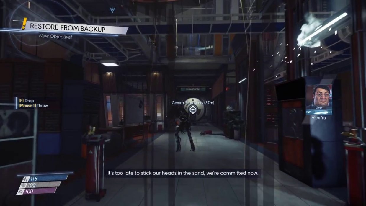 I’m done for now in life support so I’m moving on to deep storage. Once you enter deep storage you’ll have to find another way out because Alex locks you in. The first room you come across there is a neuromond on the floor and a computer that has the stairwell access code. There is a phantom roaming around the next room and as you enter a technopath will spawn and there will be corrupt operators with it. I used the Q-Beam and EMP grenades and that got the job done. There are turrets also that can be repaired and upgraded that will be a big help.
