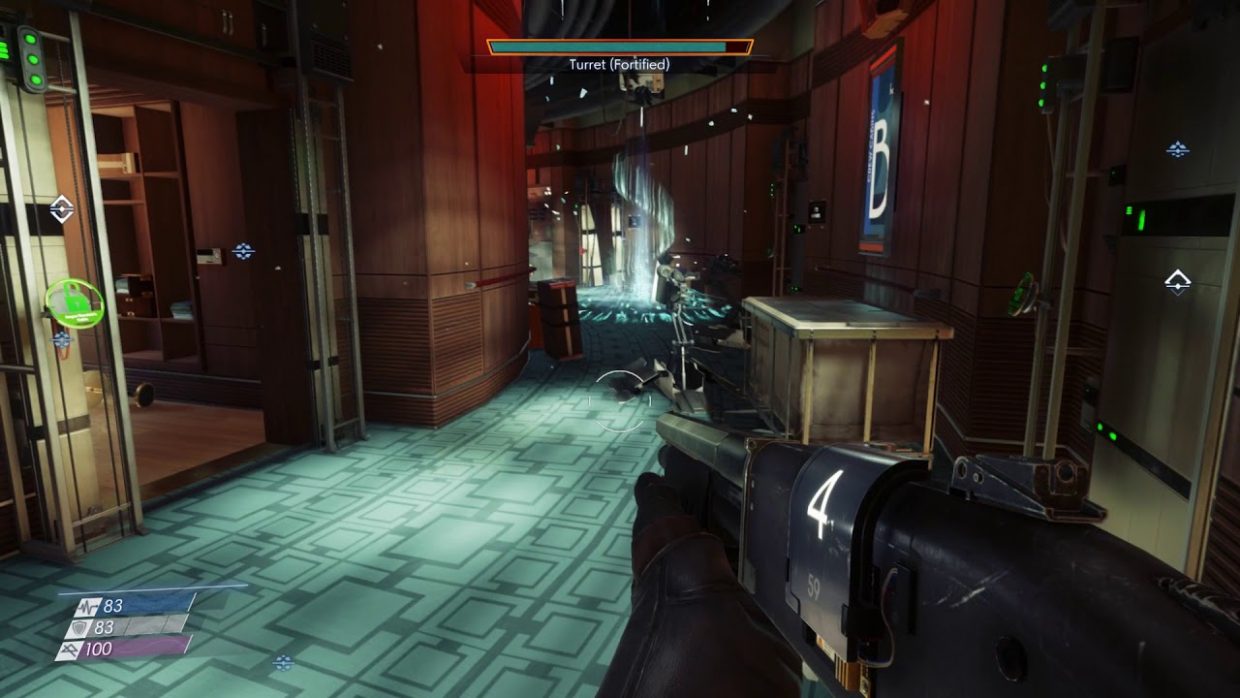 The poltergeists can be annoying cause you can’t really see them, but with the turrets they can be eliminated. There’s lots of stuff to discover and lots of voice samples. In the crew habitation pods you’ll learn of a key card that opens everything. That would be nice to have.