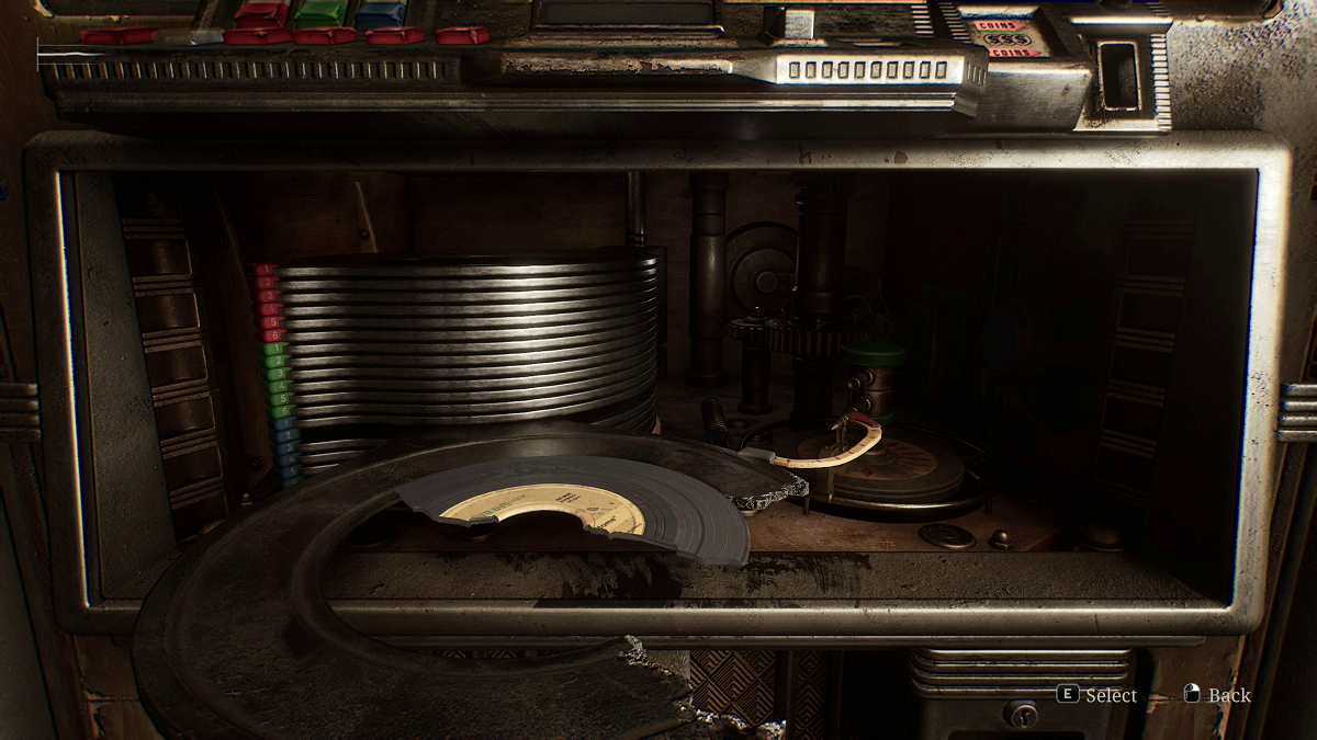 Back outside, continue up Neely heading north to Neely’s Bar on the right. Inside is a manual save point, a jukebox, and a note on the counter. The note tells the story of somebody trying to destroy the jukebox; it mentions three locations: Groovy Music, Saul St. apartments, and the pharmacy. After you read the note, look at your map for new information, and you’ll find that Groovy Music up the street has been circled. Interact with the jukebox and pick up the broken piece of record. You’ll need four things before you return: a jukebox coin that can be found in the Texan Cafe cash register, a jukebox button that can be found in the Saul St. apartment third floor bathroom , the two halves of the broken record—one from the bar and one from Groovy Music—and lastly, glue that’s also at Groovy Music. All this will be in the next post. For now, there’s a manual save, so it’s a good place to stop and get ready to go back out into the freak-infested streets of South Vale East.
